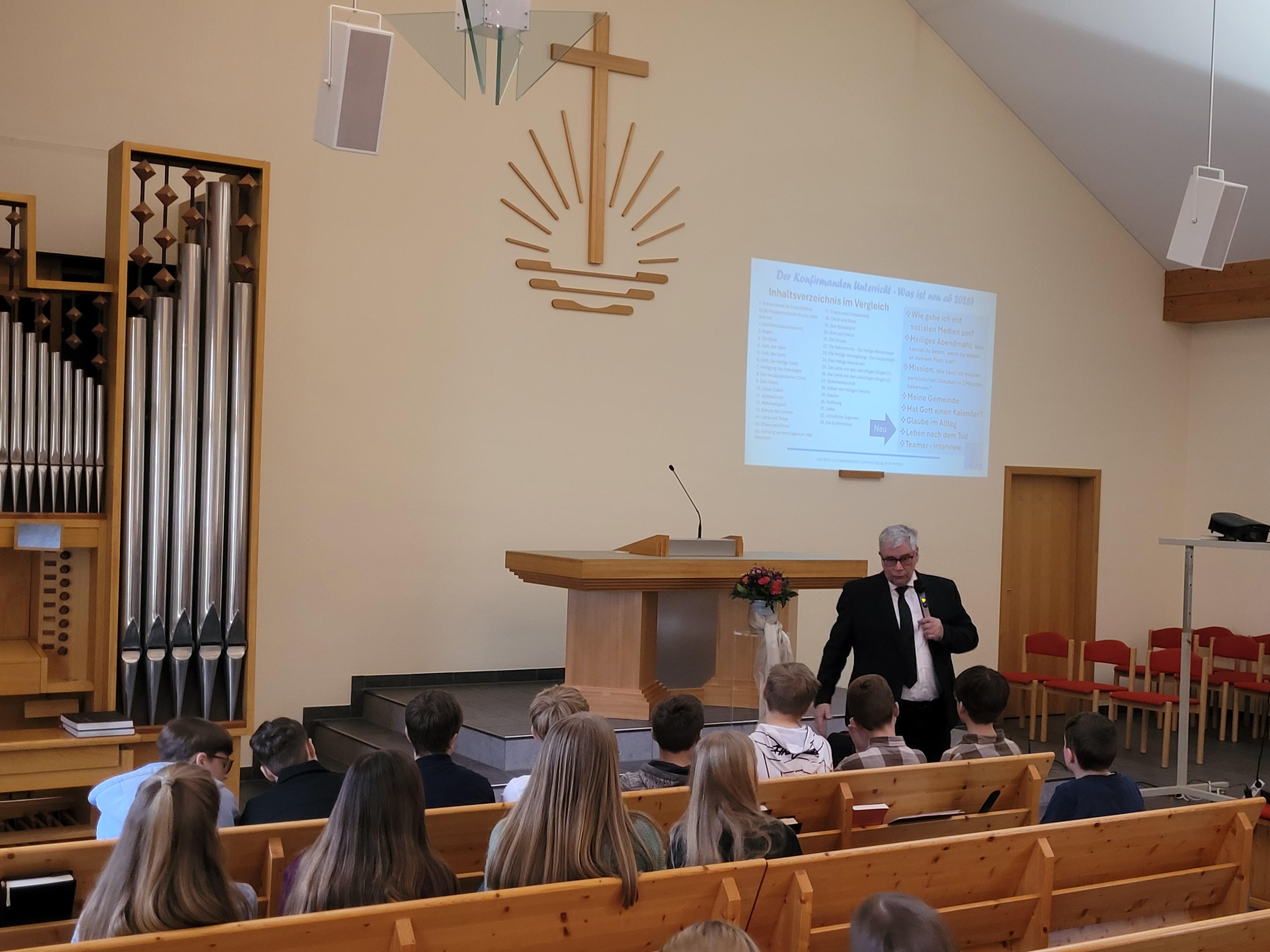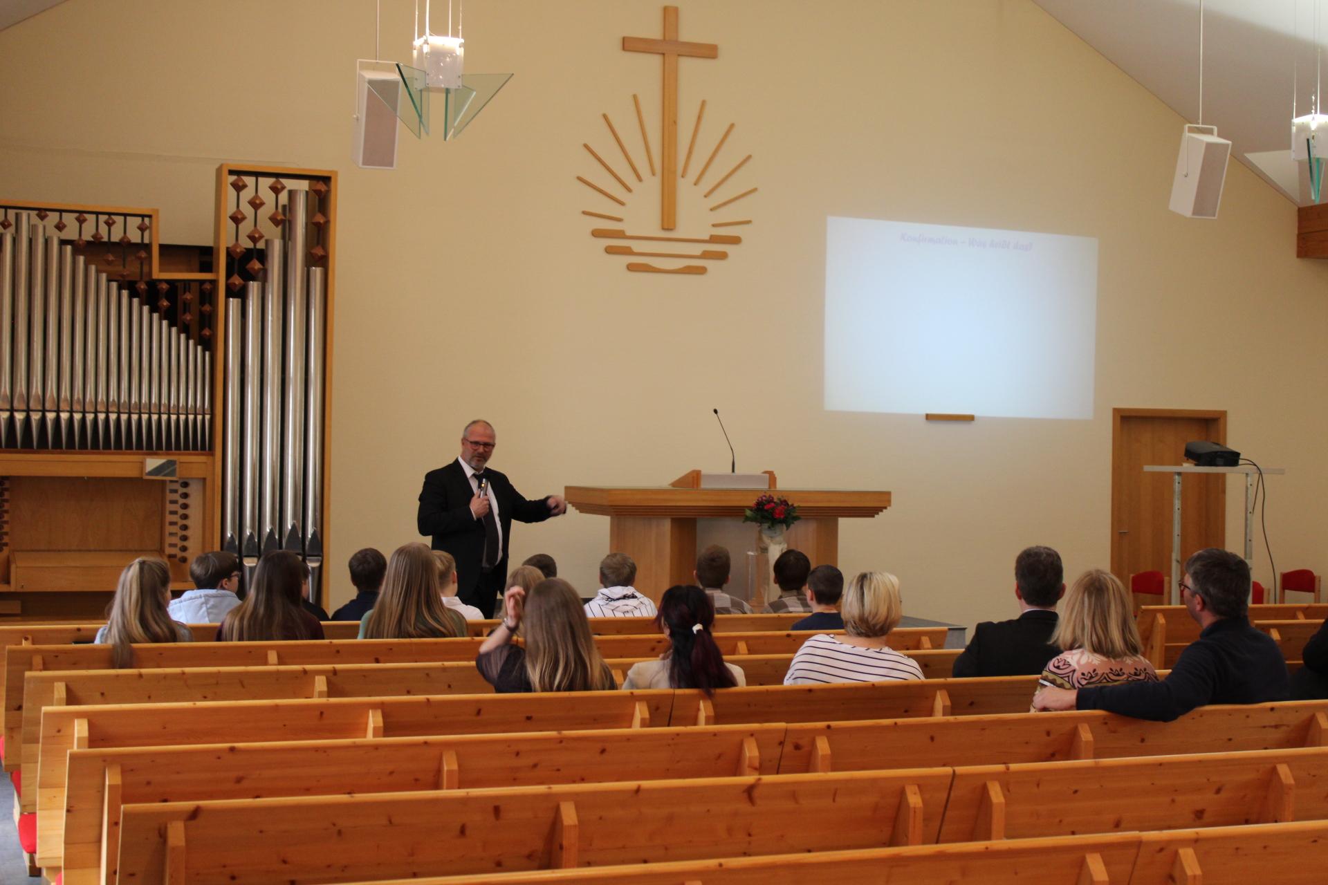 Im Anschluss an den Gottesdienst wurden die zukünftigen Konfirmandinnen und Konfirmanden herzlich begrüßt und erhielten erste Einblicke in die kommenden Monate der Konfirmandenzeit. Dabei wurden ihnen die Konfirmandenlehrer vorgestellt, und die zukünftigen Jugendlichen erfuhren, welche Themengebiete sie im Unterricht erwarten.
