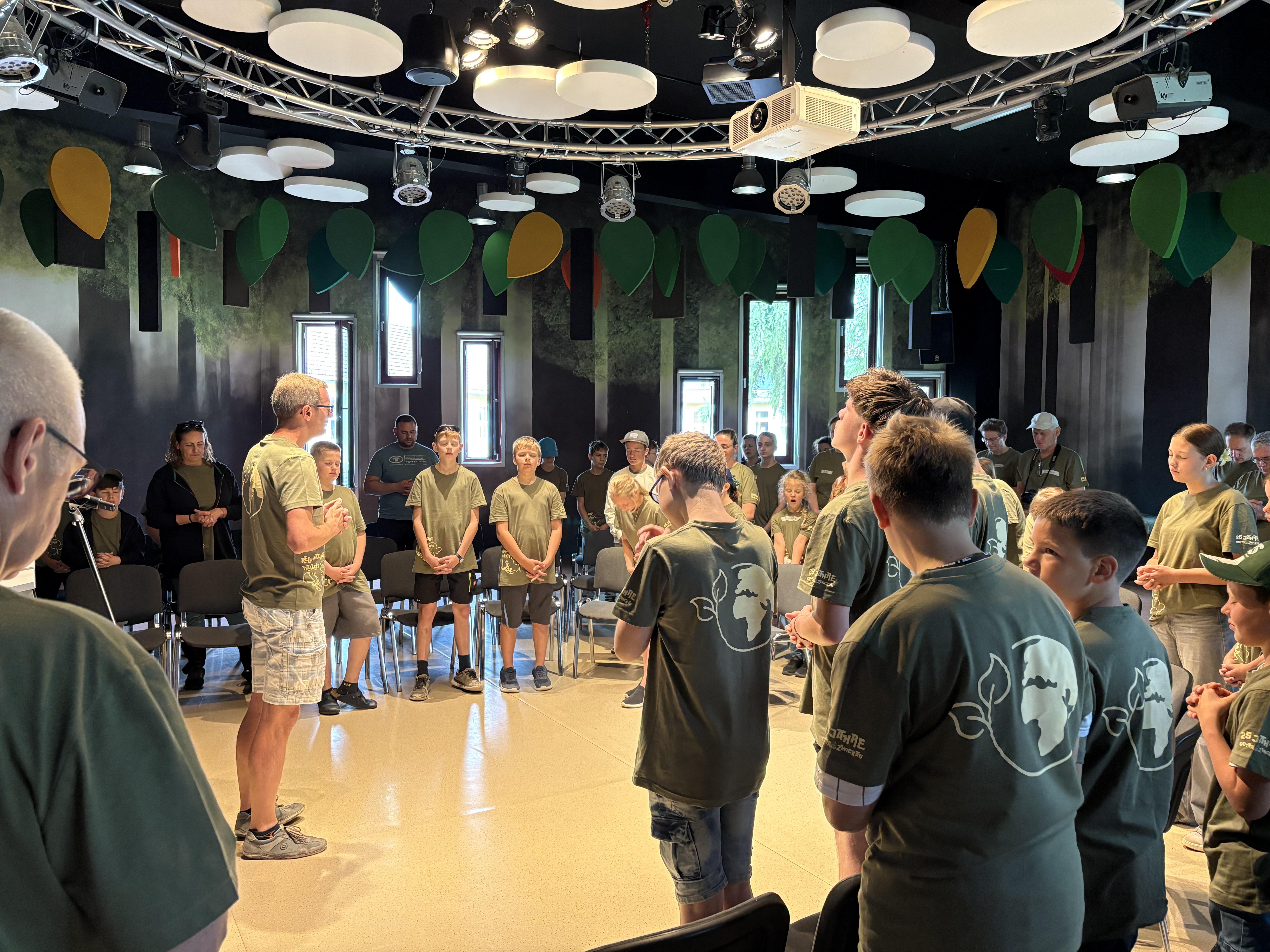 Und dann kam der Moment, auf den alle warteten: unser Abschlussgottesdienst. 💒 Wir trafen uns alle zusammen, Kinder, Betreuer – und diesmal auch ein ganz besonderer Gast: Bischof Mike Dietel war mit seiner Familie da! 🙌